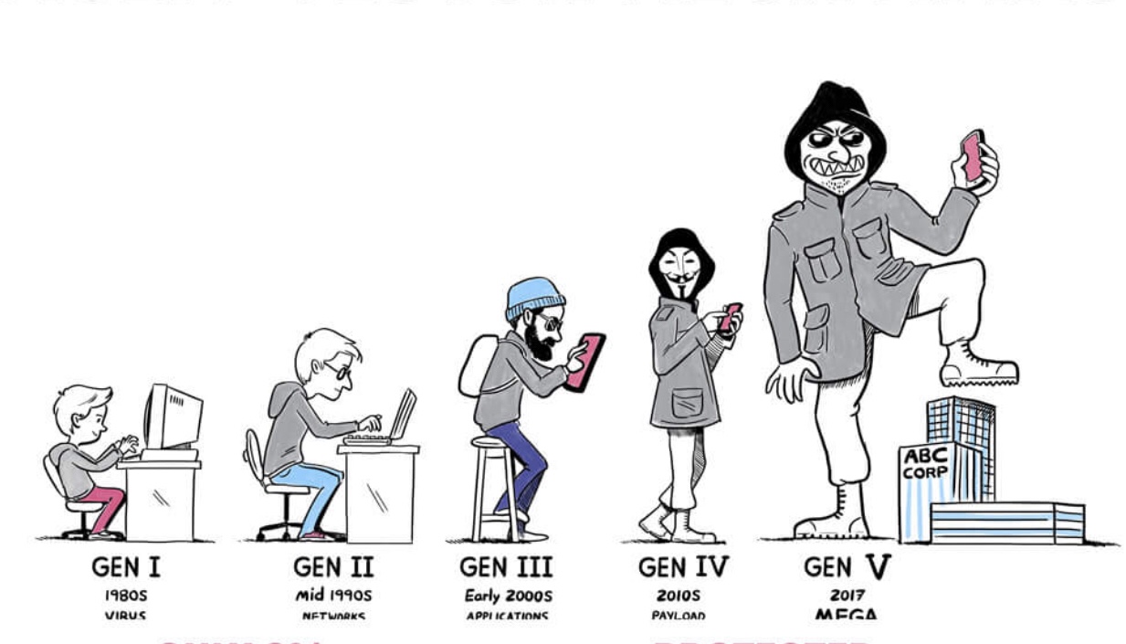 In Gen V, hackers are no longer thrill seekers claiming for bragging rights but group of professional criminals who intend to gain financial profits; sometimes, state-sponsored with an aim to spy or plainly destroy. A Gen V attack is well described in The Global Risks Report 2018 (13th Edition), “… incidents that would once have been considered extraordinary are becoming more and more commonplace.” And the report cites two attack examples, “…the WannaCry attack—which affected 300,000 computers across 150 countries—and NotPetya, which caused quarterly losses of US$300 million for a number of affected businesses.”