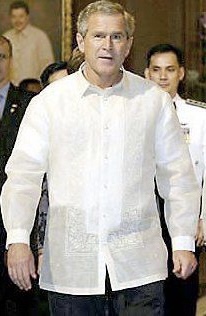 “As you can notice tonight, we, the gentlemen, are in Barong, not in our usual military uniforms; because for us Filipinos, the barong is a Power Dress. Executives in Makati and lawyers classified as “Abogado de Campanillas” wear barong. Even foreign dignitaries invited to Malacanang are now required, as stated in their invitations, to come in barong-not in their usual coats and ties! Maybe, you noticed this when President Bush attended a formal dinner in Malacanang last year. He wore a Barong!”