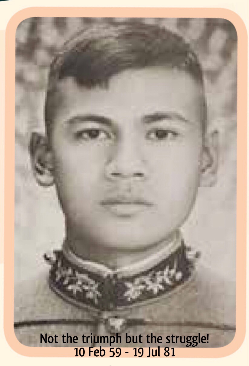 “Not the triumph but the struggle” …this phrase was the dedication of Jose “Jun” Ramos Briones, Jr., above is his picture in our class year book “The Sword 1980 ” . I think it clearly describes what he had gone thru during our cadet days which metamorphosized him from a young and determined teenager into a true son of our Alma Mater, the Philippine Military Academy (PMA).Yes, Jun is greatly missed, and almost forgotten… except for a lonely street in Fort Magsaysay, Nueva Ecija, named in his honor. Allow me to share “flash backs” of my fond recollections of Lt. Briones’ life as a cadet and albeit short, as an officer and some Mistahs who had been part of his life.